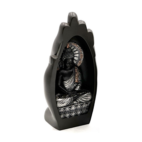 Decorative Thai Buddha Figurine - Silver & Black Hand Shaped Carved Lotus
