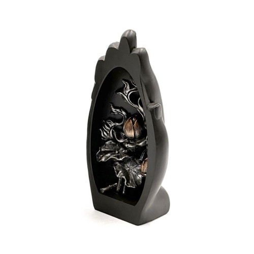 Decorative Thai Buddha Figurine - Silver & Black Hand Shaped