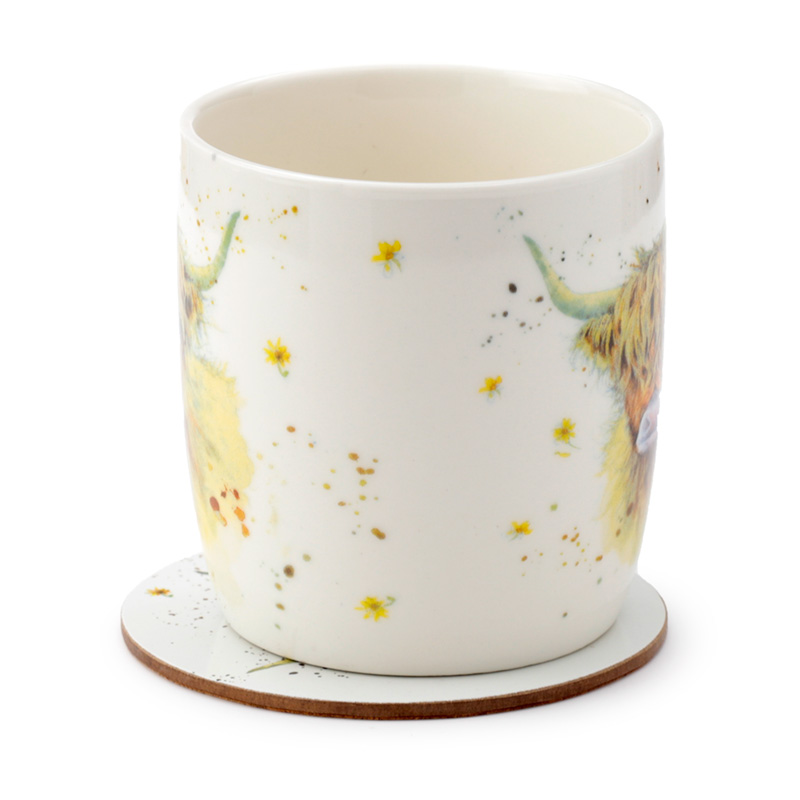 Porcelain Mug & Coaster Set - Jan Pashley Highland Coo CowMugs and Coffee Cups