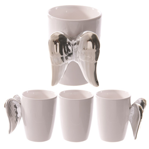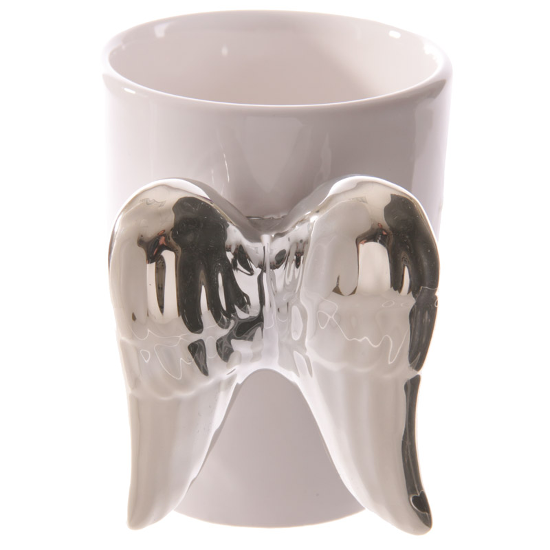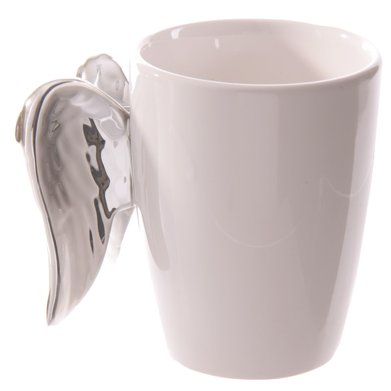 Tags: Shaped Handle Ceramic Mug - Silver Angel Wings, ANG135, Mugs and Coffee Cups,
