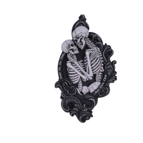 Add a gothic touch to any space with this And Even Then Wall Plaque. Featuring a pair of skeleton lovers who deeply admire one another, with the words 'Until We Are DustAnd Even Then' around the outside of the plaque. Cast in the finest resin before being expertly hand-painted, this wall plaque would make the ideal gift for any gothic lover.And Even Then Wall Plaque 39cm