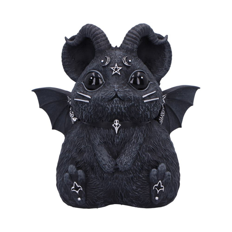 Introducing the enchanting Cult Cuties Marchillias, a delightful figurine inspired by the charming chinchilla, now with a whimsical twist. This adorable creature features menacing horns, bat wings, and a collar adorned with a silver skull, blending cuteness with a hint of gothic allure. Perfectly packaged in a Nemesis Now Cult Cuties branded gift box, Marchillias sits securely within a protective foam insert, topped with luxurious red felt. The box's see-through window ensures this unique piece is displayed beautifully. Ideal for collectors and lovers of gothic and witchy decor, Marchillias also makes a perfect gift. Let the charm of Marchillias grace your collection and dcor today!NN Designs