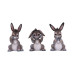 From the delightful imagination of Nemesis Now's in-house design team is these Three Wise Donkeys. Sitting side by side, these Three Wise Donkeys look forward with adorable eyes. One clasps their hooves to their mouth, one blocks their ears and one covers their eyes, sneeking a peek regardless. Cast in the finest resin before being expertly hand-painted, these Three Wise Donkeys are the perfect illustrations of Confucius' famous maxim: "See no evil, hear no evil, speak no evil".