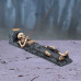 This alternative incense holder comes from Gothic brand Nemesis Now and is cast in high-quality resin and painstakingly hand-painted. In a black crypt, this skeleton reclines in a relaxed pose, rotting black shroud crumbling off them. Their left hand rests across their lower ribcage, while their right hand sits further up, closed very loosely and providing a holder for an incense stick. The black brick head of this space in the crypt also has space for a small candle. Perfect for any appreciator of Gothic art and pleasant smells, why not pair with your favourite incense?Ashes to Ashes 28cm