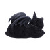 Seen curled up in a ball, this black feline sleeps peacefully. Dreaming about taking flight with his small bat wings, he wears a small pentagram attached to his collar and has two vampiric fangs. Cast in the finest resin before being carefully hand-painted this vampire cat figurine is the perfect addition to any alternative home or feline fanatic's collection.