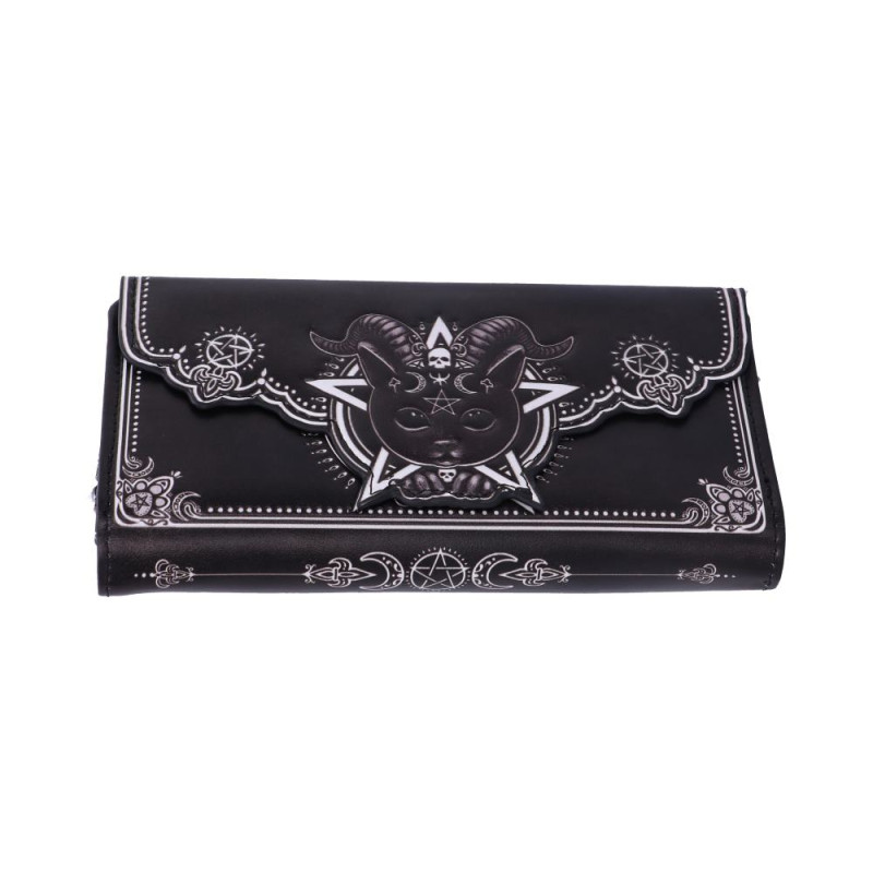 This Pawzuph Embossed Purse is the union of good and evil, as you look into its black eyes you notice the darkness that resides. Inside this cat appears to be the spirit of Baphomet, encapsulated by goat horns and satanic symbology. This amalgamation of horror and delight will make the perfect addition to any feline fanatics collection.NN Designs