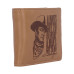 . | Tan wallet with the words 'A Mans Got To Do What A Mans Got To Do' emblazened across the front. |