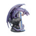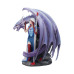 From the imagination of Anne Stokes, this artwork was immortalised in resin by Nemesis Now. Standing on a rocky platform, this red-haired mage wears a long, white flowing robe over her blue dress, brown gloves coming to her elbows. In her left hand she holds an arcane staff, a red egg-shaped jewel set in the end glowing with magical power. A violet-tinged Dragon curls around her, wings shielding her protectively, while she lifts her other hand to scratch under their chin. Around them, glowing red crystals emerge hesitantly from the rock. Cast in the finest resin before being carefully hand-painted, this beauty would make the perfect addition to any Gothic Fantasy collection.Dragon Mage 24cm (AS)