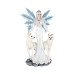 This beautiful Fairy figurine comes from alternative brand Nemesis Now. Standing proudly, this regal Fairy's long white dress flows down to the rocky floor, fur lining the neckline. A tiara encrusted with white diamonds sits atop her long white hair as she looks forward with royal disdain. Her icy blue wings stretch out behind her, the shape of frozen leaves covered in ice, as she places her hands on the heads of the two white wolves at her sides commandingly. Cast in the finest resin before being carefully hand-painted, this statuette is fitting for any queen of the winter.Aura 60.5cm