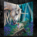 From the Magical mind of Fantasy artist Lisa Parker, this enchanting throw was created by alternative brand Nemesis Now. It is soft to the touch and is perfect for those cold winter nights. On the surface of the forest floor two magical creatures emerge and reach out to one another. A tiny Fairy stands atop a fallen tree branch as it reaches upwards, greeting an adult Unicorn which cranes downward, just close enough so that the Fairy can touch the Unicorn's nose. The Fairy wears a tattered lavender dress with her translucent wings reflecting the moon's light as it filters through the treeline above. As the Unicorn cranes downwards its long, untamed mane follows. Behind the mystical creatures is a lush bluebell wood during twilight, completing the magical scene. This Fairy tale throw is magically soft, making it perfect for any chair, sofa or bed.Fairy Whispers Throw (LP) 160cm