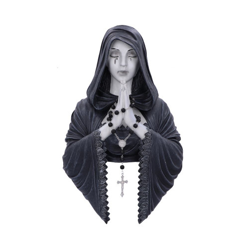 Created by alternative brand Nemesis Now's Gothic Fantasy Giftware wholesale collection, this beautiful wall plaque comes from the Gothic and Fantasy artwork of world-renowned artist, Anne Stokes. A young woman in a black cowl, tears running down her cheeks. Her hands are clasped in prayer, with a crucifix hanging from the rosary beads between her hands. Head bowed in mute, desperate supplication. This piece is cast in the finest resin before being carefully hand-painted and brings macabre beauty to any room.Gothic Prayer 39cm