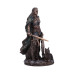 Freya is a goddess in ancient Norse mythology, most often associated with love, war and fertility. Here she can be seen with her trustee companions, ready for battle, with a sword firmly gripped in her hand and a shield resting upon her leg. Making this the perfect product for any alternative home or mythological collection.
