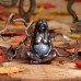 Transcending all in existence, Mother Earth rests, supporting the world as a pregnant belly between her decorated arms. Cascading over her shoulders and down her back, her hair is comprised of green foliage, adorned with intricate golden embellishments. Covering her modesty, the greenery shrouds her breasts which form the celestial Moon and Sun. This mini Mother Earth is cast in the finest resin before being expertly finished in bronze.