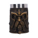 . Features a dark gold resin exterior sculpted with the powerful weathered face of Odin, complete with his iconic helmet and flowing beard, and a removable stainless steel insert for easy cleaning and practical use.