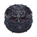 Unveil the mystique with the "Hoard of the Baphomet" trinket box by Nemesis Now. This exquisite round box features a commanding Baphomet on the lid, encircled by serpents, skulls, and arcane symbols, all cast in high-quality resin and meticulously hand-painted to capture every detail. Deep enough to safeguard your most cherished treasures, it offers both practicality and a touch of gothic grandeur. Perfectly packaged in a Nemesis Now branded gift box, it makes an exceptional gift for enthusiasts of the occult and collectors of the macabre. Elevate your decor with this stunning fusion of art and utility.Hoard of the Baphomet 11cm
