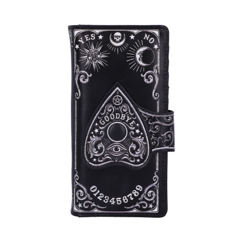 Spirit boards have long been one of the most powerful occult tools there is and are the inspiration behind this incredibly detailed piece. Featuring a planchette which acts as the clasp of the purse, alongside the numbers 0 to 9 and the words YES and NO. This beautiful embossed detailing enhances the magic and creates a striking 3d effect.Spirit Board Planchette Embossed Purse 18.5cm