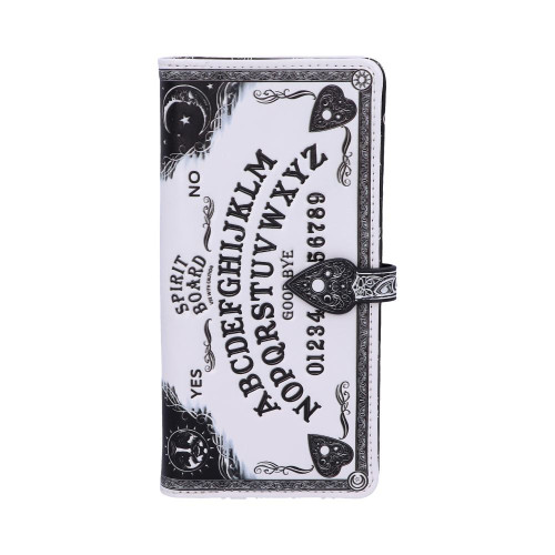 From the untamed imagination of Nemesis Now's in-house design team, this embossed Purse is a stylish addition to any outfit. Spirit boards have long been one of the most powerful occult tools there is. Bordered with intricate baroque designs, the background is white and has the alphabet marked out in an arc. Each side of Goodbye, two ornate planchettes are pointing towards the centre, as if ready to move. The design also includes numbers 0 to 9 and the words YES and NO, as well as a warning to use with caution the power of the spirit world is not something to take lightly. The beautiful embossed detailing enhances the magic and creates a striking 3D effect.White Spirit Board Embossed Purse 18.5cm
