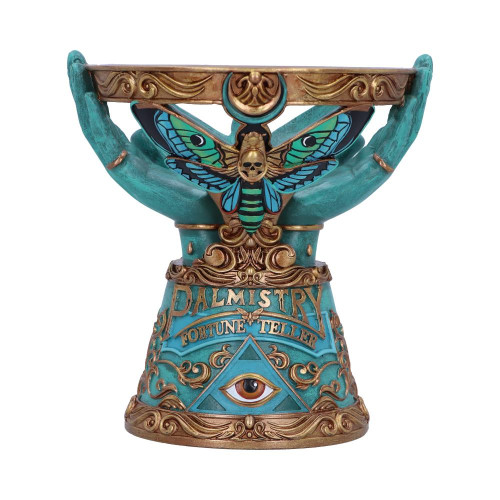 Exclusively available as part of Nemesis Now's own design collection is this stunning The Teller Crystal Ball Holder, featuring the hands of the Palmistry Fortune Teller. Designed with precise detailing, beautiful colours of aqua blue and metallic gold the base of the Crystal Ball Holder features the Eye of Providence whilst two hands form the holder for the Crystall Ball. Cast in the finest resin before being expertly hand-painted, this goblet is perfect for any spiritual lover. Please note the Crystal Ball is sold separately.