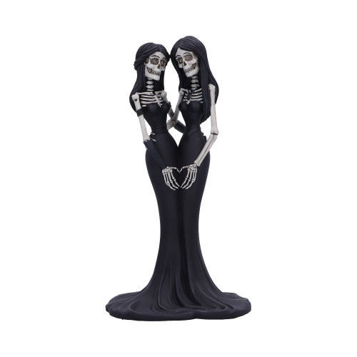 Add a gothic touch to any space with this Eternal Sisters figurine. Holding each other at the waist these sisters make a love heart with their skeletal hands. Heads tilted toward one another as they smile, their long flowing black dresses blend into one, to make the base of the figurine. Cast in the finest resin before being expertly hand-painted, this Eternal Sisters figurine would make the perfect gift to any gothic lover.