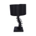 . Featuring a resin spine stem, bent in eerie curvature, topped with a black lampshade and fitted with a standard UK plug.