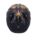 Painted in black paint and decorated with multiple Tarot cards on the upper cranium, with 'Palmistry' adorning the top of the skull. This piece also features various symbols and astrological signs, which decorate the sides of the skull in rich gold. Cast in the finest resin before being expertly hand-painted, this product is perfect for those who want to spice up their skull collection with something different.Destiny 18cm