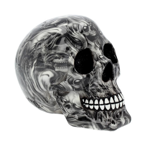 From alternative brand Nemesis Now's giftware collection, this dark skull is great for any lover of horror. Sunken eye sockets and nasal aperture a deep black, this grinning skull is covered with the ghostly images of screaming, horrified skulls, their skeletal hands clutched to their faces in terror. Cast in high-quality resin, this skull is a fantastic way for lovers of the macabre to decorate their home.Soul 19cm
