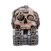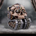 We are proud to present to you this alternative Tecno Tank skull. Covered in arcane and mysterious mechanisms, this skull has been modified almost beyond recognition. Seen on top of a continuous track with a gun emerging from one of the eye sockets. Gold and silver wires and pipes snake in and around the crevices, connecting to the machinery elsewhere on the skull, and is finished with cogs, gears, screws, and rivets. Cast in the finest resin before being carefully hand-painted, this skull is an essential addition to any fantasy or steampunk collection.Techno Tank 16cm