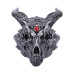 Immerse yourself in the mystique of the Tribal Flame Skull, a captivating creation from Nemesis Now's value collection. Crafted with care and precision, this dragon skull stands at 11cm, showcasing a stunning display of mythical artistry. The skull, decorated in brilliant silver, boasts intricate ornate detailing inscribed throughout, capturing the essence of the grand scale and danger associated with these legendary creatures. The eye sockets are deep and dark, exuding an air of mystery, while the sharp teeth serve as a stark reminder of the dragon's formidable nature. A standout feature is the crimson gemstone nestled at the center of the beast's forehead, adding an extra layer of mysticism to this mythical masterpiece. Made from the finest resin and meticulously hand-painted, the Silver Dragon Skull is a testament to quality craftsmanship. Part of Nemesis Now's extensive dragon-themed giftware collection, this piece is perfect for those who appreciate the allure of magical creatures. Whether your customers are avid collectors or seeking a unique and enchanting gift, the Tribal Flame Skull is sure to captivate and inspire the imagination, inviting you into a world where dragons reign supreme.Tribal Flame 21.5cm