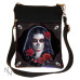 Created by Nemesis Now, this enchanting shoulder bag comes from the wild and untamed imagination of world-renowned Gothic and Fantasy artist James Ryman. In front of a black background, a young woman with black hair stands and stares enchantingly, her face painted bone white. Stitches painted over her mouth, her makeup makes her look like a red and black Mexican sugar skull, her piercing red eyes set in the idle of painted-in eye sockets. Red roses are scattered throughout her hair, and at the red-bordered corners of the bag, 4 skulls with the same makeup as the woman grin towards the centre macabrely. This shoulder bag has a smaller front pocket in addition to the main pocket for greater ease and flexibility of storage, as well as an adjustable strap, making it perfect for anyone who wants to take a touch of darkness and mystery with them on the go.Sugar Skull (JR) Shoulder Bag 23cm