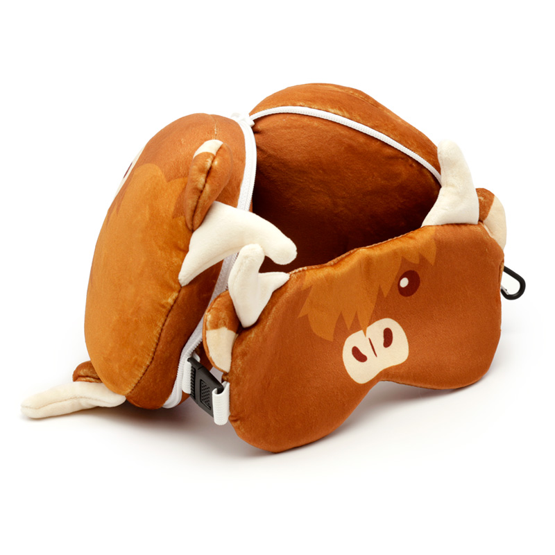 Relaxeazzz Travel Pillow & Eye Mask - Highland Coo Cow